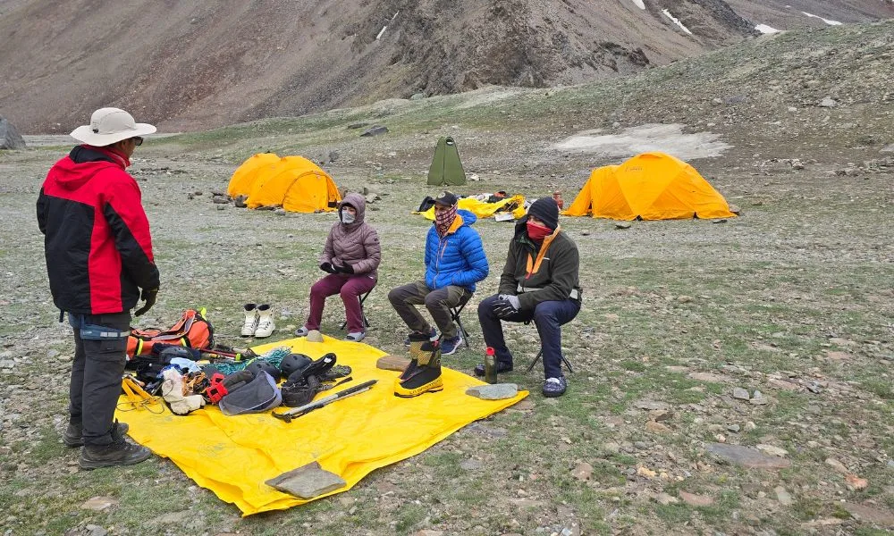 This day of the Mount Yunam Peak Expedition is reserved for Acclimatization. You will also get a briefing from the Kahlur Adventure’s trek leader followed by a training session. You will also need to prepare the equipment for the day of the summit. You will have your hot dinner in the midst of nature and stay here overnight.